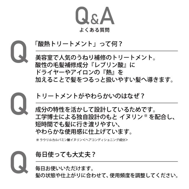 サロンでも使用されている酸熱トリートメント成分※1配合でうねりや広がりが気になる髪を内部から集中補修し、